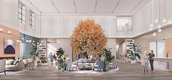 ????銀杏客廳:把室外景觀引入室內(nèi),1:1 原生銀杏樹(shù)營(yíng)造感染力極強(qiáng)的休閑空間氛圍,配合整個(gè)區(qū)域內(nèi)的景觀植物和軟裝元素,為長(zhǎng)者打造一個(gè)親切自然的空間體驗(yàn)。銀杏客廳既可為長(zhǎng)者提供休息、社交空間,也可根據(jù)不同的家庭團(tuán)聚需求,變成除了家以外的第二個(gè)周末客廳。