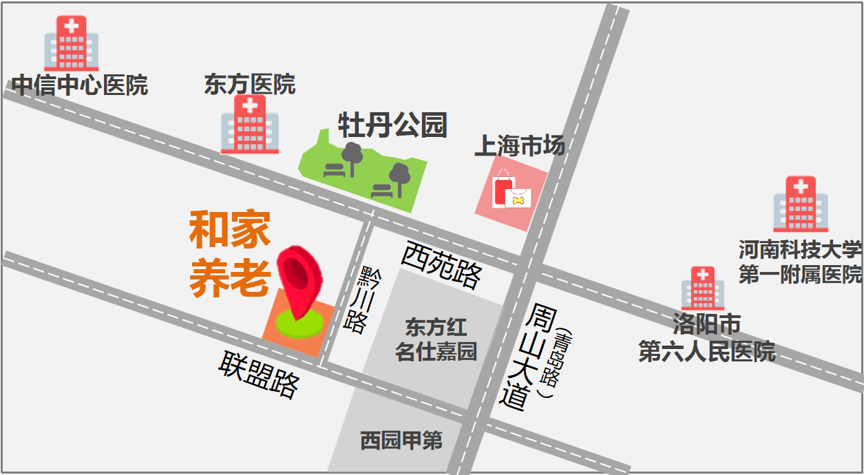 洛陽(yáng)和家養(yǎng)老服務(wù)中心——和家·洛園,是洛陽(yáng)市區(qū)范圍內(nèi)高品質(zhì)的養(yǎng)老服務(wù)機(jī)構(gòu),坐落于洛陽(yáng)市澗西區(qū)核心地域聯(lián)盟路和黔川路交叉口西北角,區(qū)位優(yōu)勢(shì)極其優(yōu)越,常年招收半自理、失能、失智的老年人。